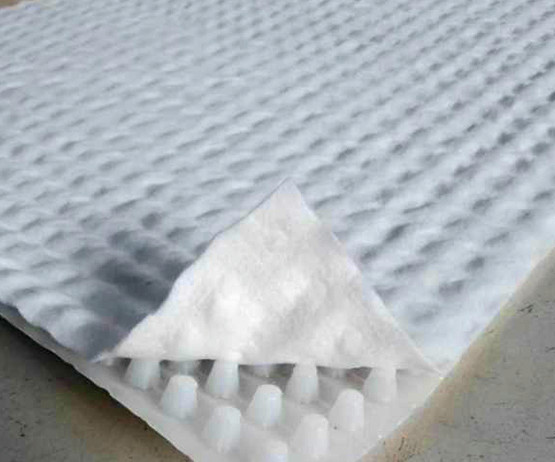 高分子防護排水異型片自粘土工布卷材是由高密度聚乙烯(HDPE)純白原料,在熔融狀態(tài)下經真空吸塑一次成型制成,制造出的單向連續(xù)密閉殼體型凸起的板狀材料,形成一種膜、殼連接,具有立+體排水空間和一定支撐剛度,液體、氣體可以在其內流動的防護排水卷材。